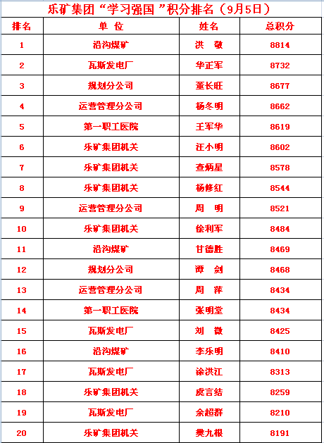 快来看啊!乐矿集团“学习强国”学习达人名单~